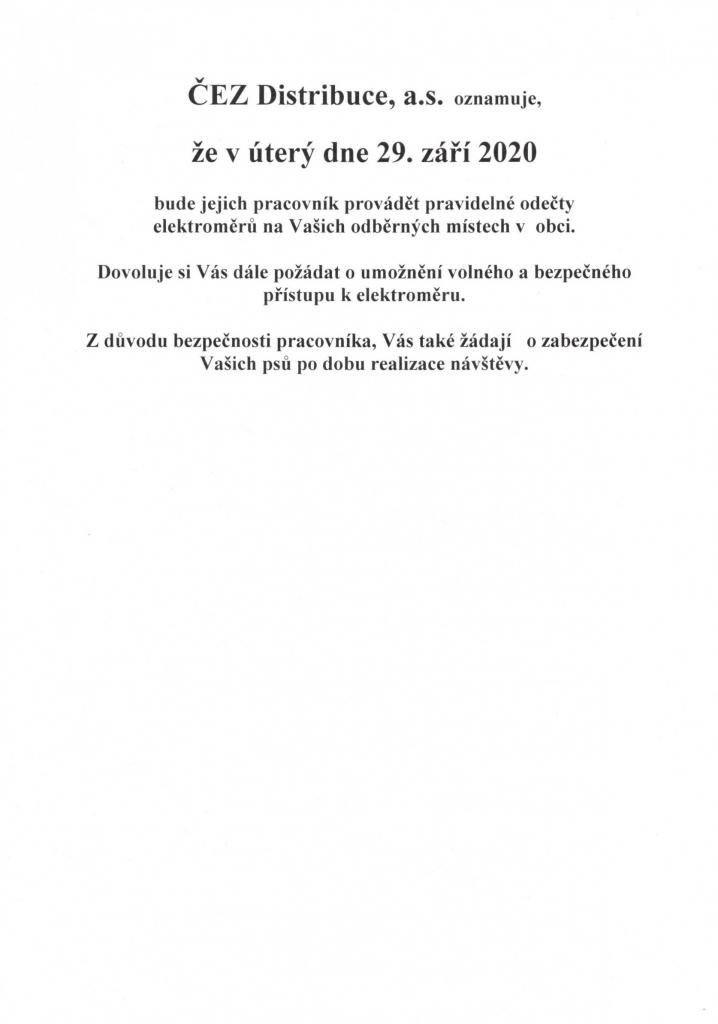 V úterý 29.9.2020 bude pracovník ČEZ Distribuce, a.s. v obci Křenek provádět pravidelný odečet elektroměrů.